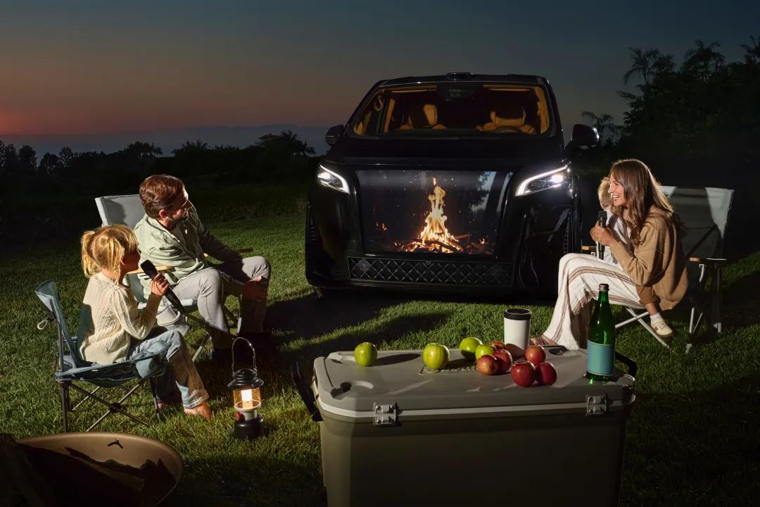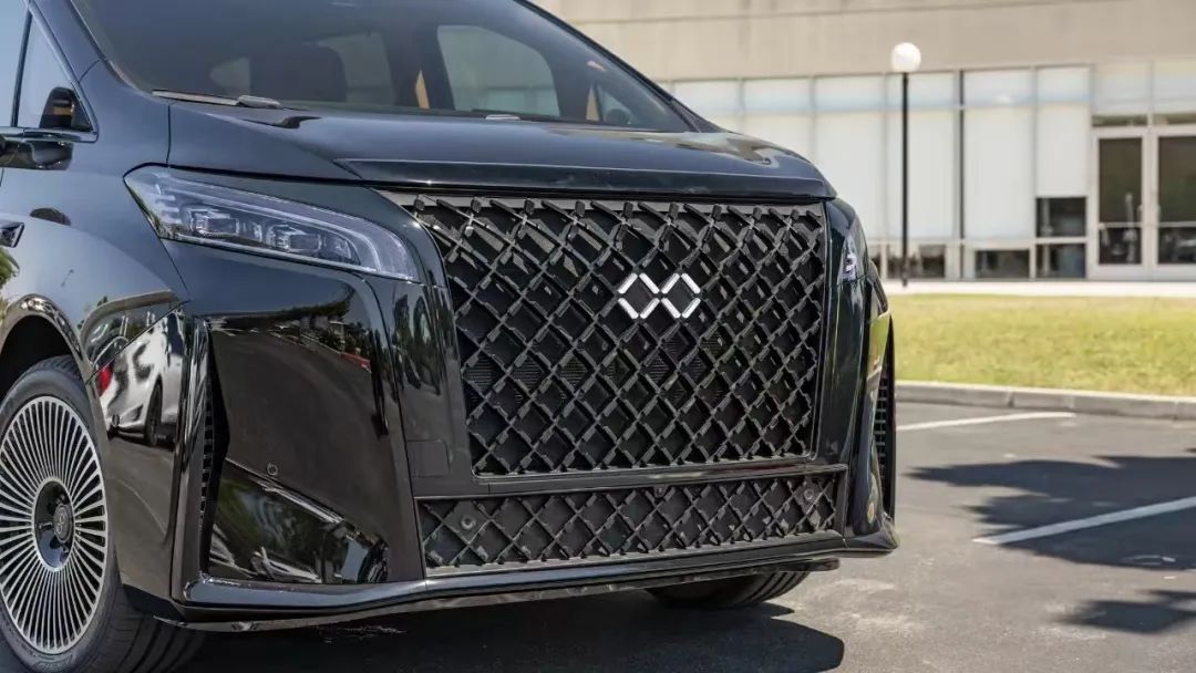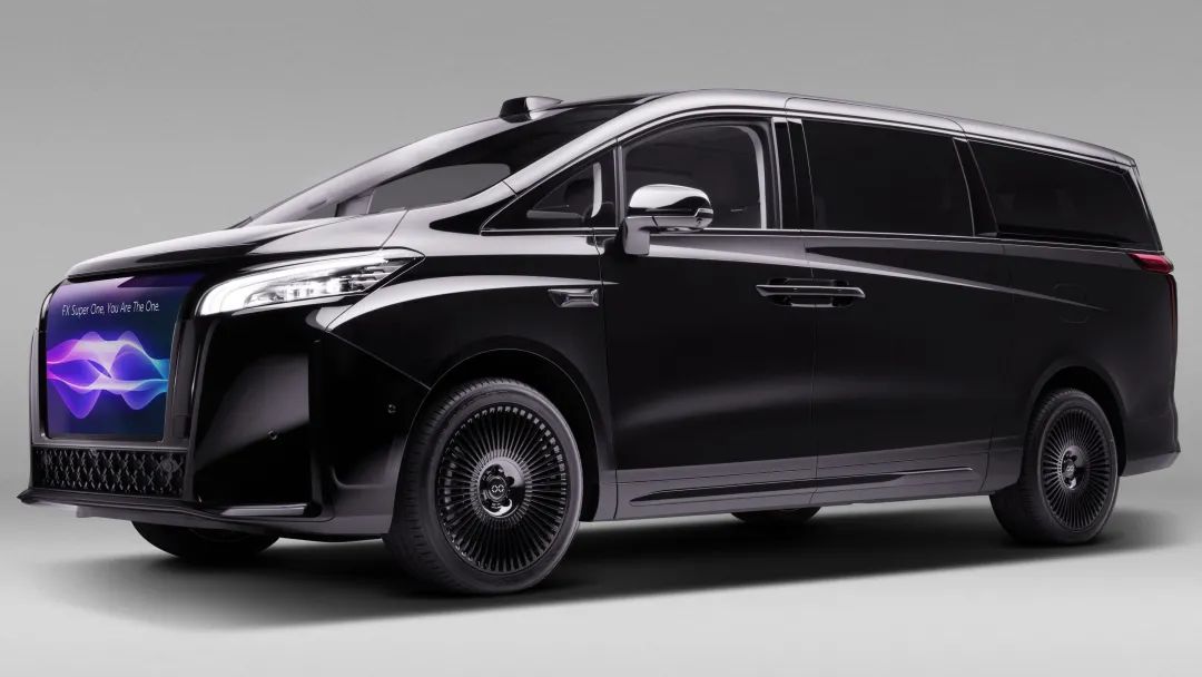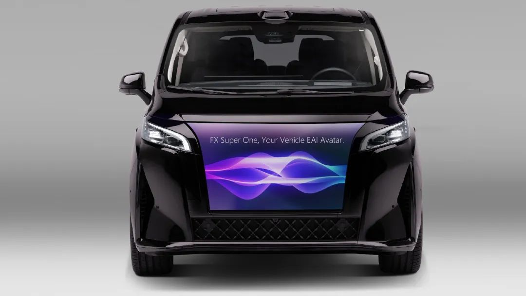 FX Super One是一款完全不同于市场上MPV的车型,其车头采用大尺寸前格栅设计,前格栅为整体式屏幕,FX品牌将其称为“AI具身智能生命体”,可以自定义显示任何图案,但分辨率略低于真正的屏幕。屏幕两侧则配备带有透镜的大灯组,前风挡拥有较大的倾角,顶部配备激光雷达。不过,FX Super One的车头格栅也可以选装非屏幕,整体为网格状设计。