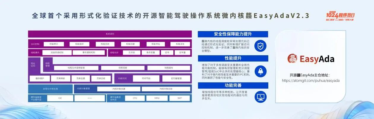 开源龘微内核EasyAda作为全球首个开源智能驾驶操作系统微内核,自2023年2月启动开源工作以来,持续迭代升级。本次发布的V2.3版本最大的亮点是安全性提升——采用了形式化验证技术,这是汽车操作系统领域的重要突破。