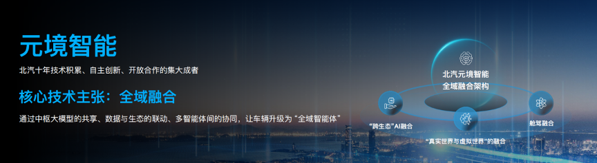 北汽研究总院副院长郑新芬介绍,元境智能技术的核心主张为“全域融合”,通过中枢大模型的共享、数据与生态的联动、多智能体间的协同,让车辆升级为“全域智能体”,打破“域”的边界,实现全域的融合与进化。