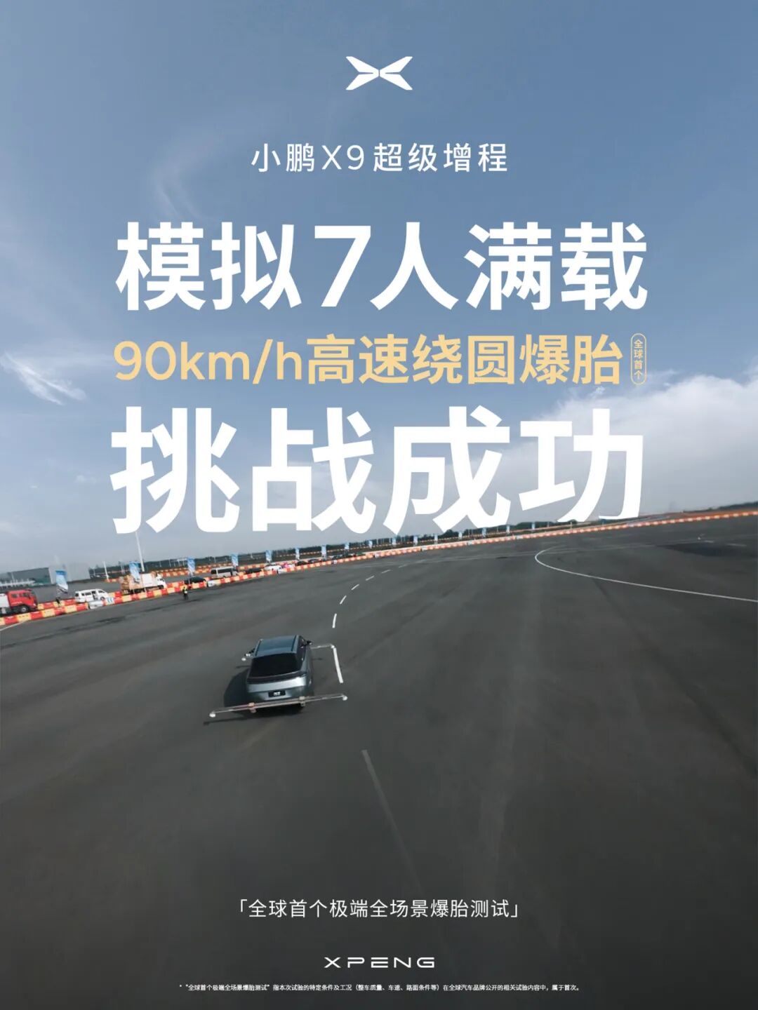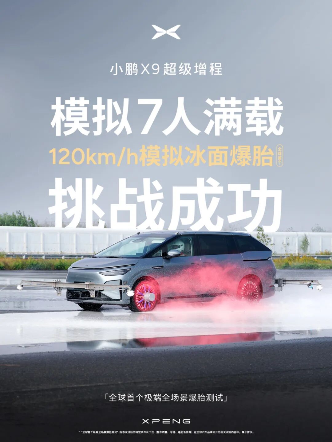 『导读』小鹏汽车X9超级增程「全球首个极端全场景爆胎测试」通关成功!