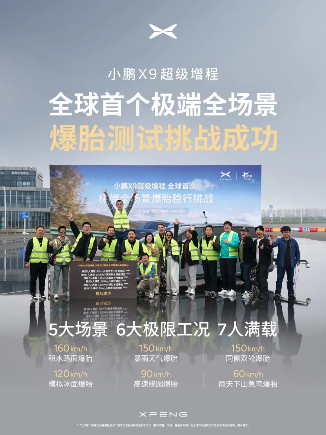 小鹏X9超级增程「全球首个极端全场景爆胎测试」通关成功!